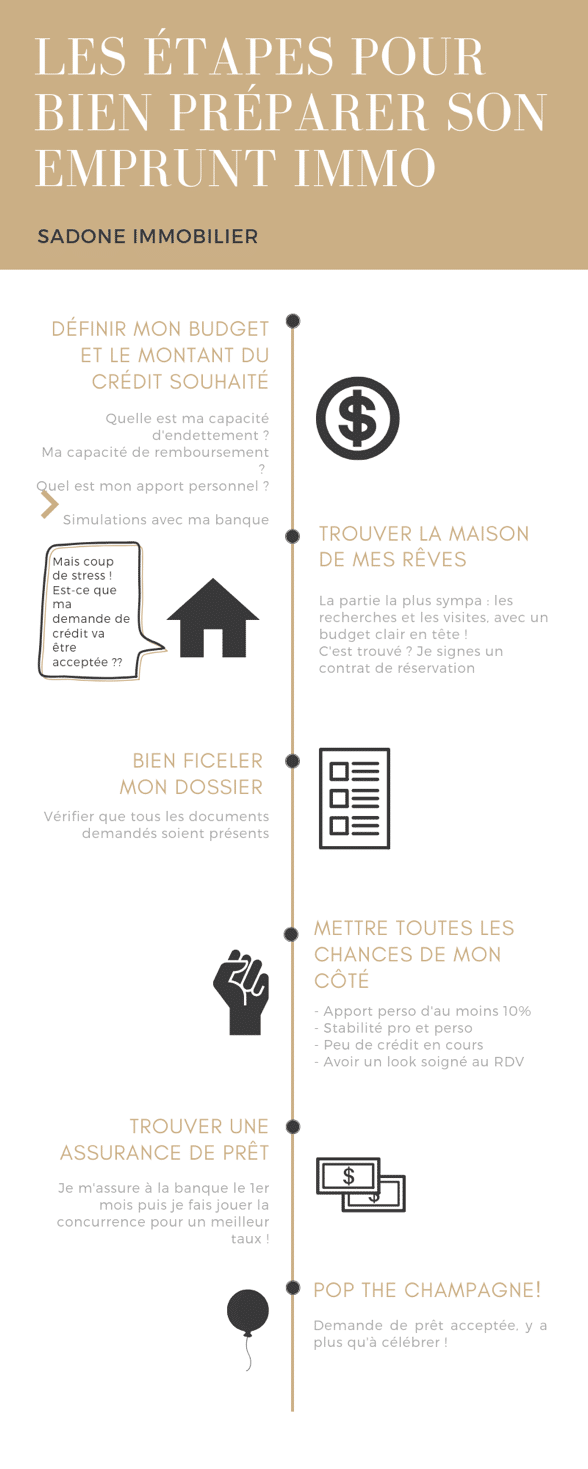 La première étape avant de demander un emprunt sera de déterminer quel montant personnel vous allez apporter et surtout quelle somme vous allez pouvoir emprunter pour compléter. Il faut réaliser que le remboursement de ce crédit deviendra une charge importante dans votre budget mensuel.