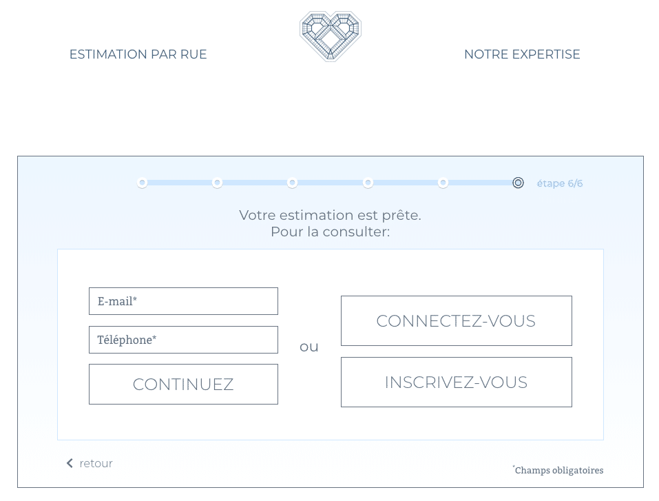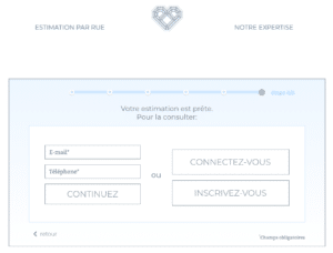 Ensuite, il vous suffit de renseigner vos coordonnées de contact, de vous identifier ou de vous inscrire sur Neuillyjetestime.com pour consulter l’évaluation de votre bien immobilier à Neuilly !