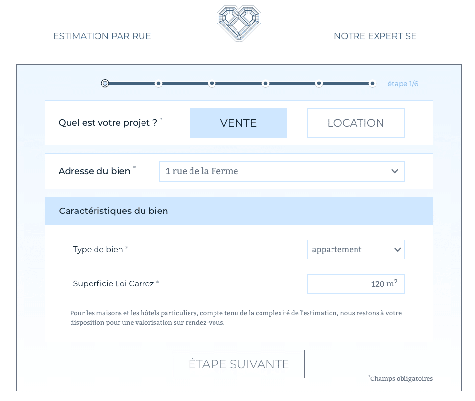C’est la première étape qui vous permet d’évaluer gratuitement votre bien immobilier en ligne