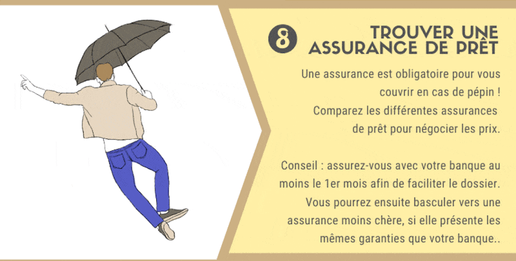 Qui dit emprunt bancaire dit assurance de prêt ! Cette assurance est obligatoire pour vous couvrir en cas de pépin. Vous pouvez comparer les différentes assurances pour négocier les prix. Votre banque vous en proposera une, qui sera certainement un peu plus chère, mais facilitera votre dossier d’emprunt.