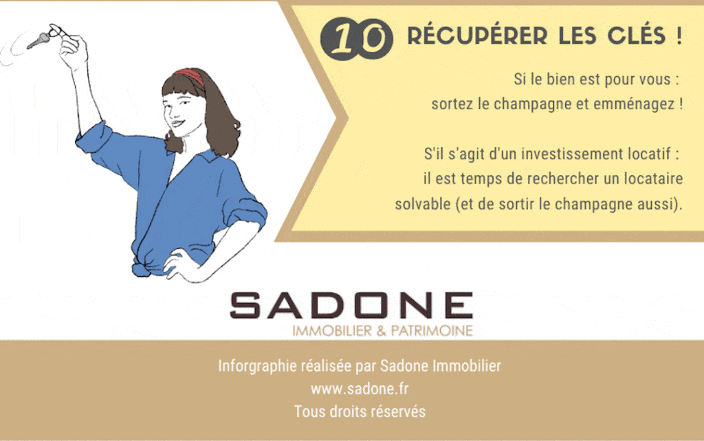 Après tous ces efforts, voici le meilleur moment : vous récupérez les clés de votre bien 🙂 C’est aussi l’heure de sortir le champagne !