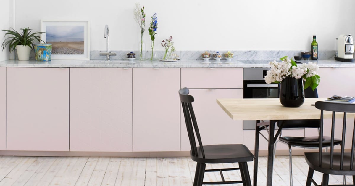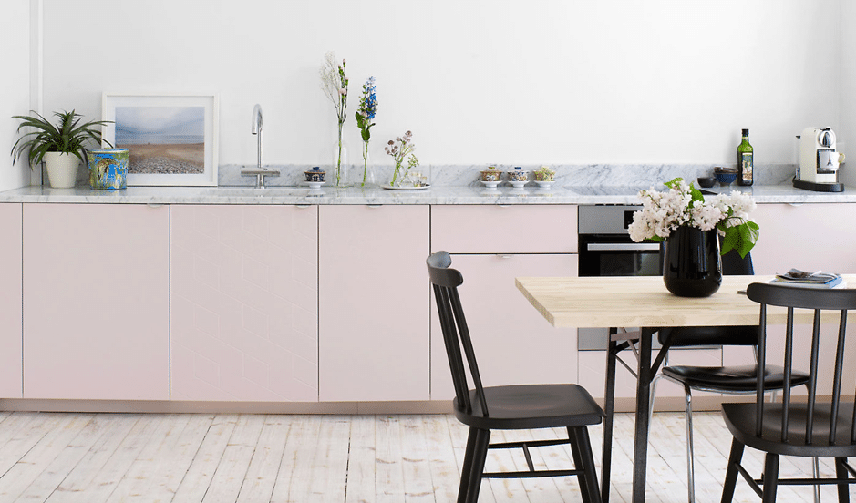 Sinon, vous pouvez tout simplement repeindre vos placards ! Le blanc ou les tons clairs restent les incontournables pour une cuisine plus lumineuse et intemporelle. Cependant, cette année, la tendance est à la couleur ! Alors pour les plus audacieux, optez pour du bleu canard, du jaune ocre, ou du millennial pink par exemple, qui est la couleur tendance de 2019 selon Maison&Objet. Les tons verts sont également très appréciés : du vert sauge au vert forêt, en passant par le kaki, le vert est une couleur reconnue pour ces vertus apaisantes et elle marque l’envie d’un retour à la nature. Enfin, le noir est une autre option, pour une cuisine plus sobre, minimaliste et chic.