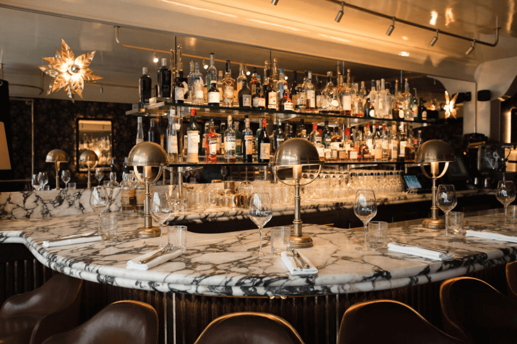 Moins d’un an après la réouverture de la salle Pleyel, Noto Paris a pris place en 2017 au deuxième étage de cette salle de concert incomparable. Autre création de Moma Group, ce restaurant a trouvé son écrin grâce à une une déco classique qui met en valeur le cachet Art Déco du lieu d’origine tout en instillant des matériaux actuels et précieux.