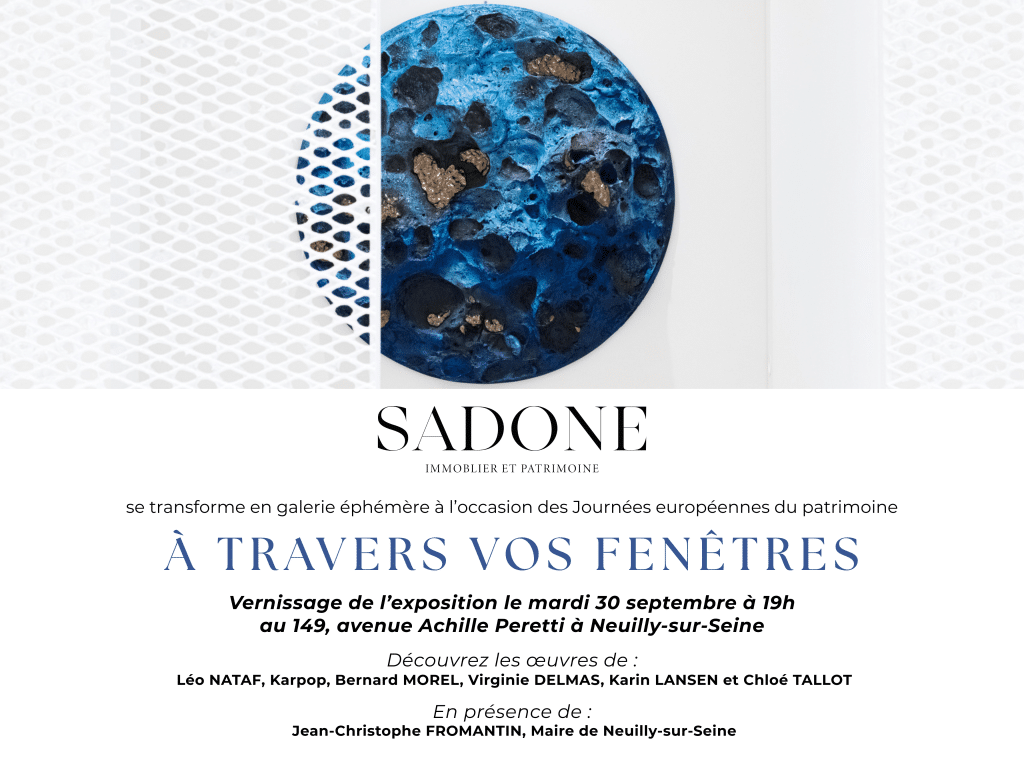 L’Agence SADONE est ravie d’ouvrir ses portes et de prêter ses murs aux artistes de Neuilly-sur-Seine à l’occasion des Journées Européennes du Patrimoine, du 30 septembre au 2 octobre 2025.